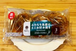 コンビニのパン 【ファミマ】ふわもち食感のミニお好み焼き|パン棚に並ぶ謎の粉もんです