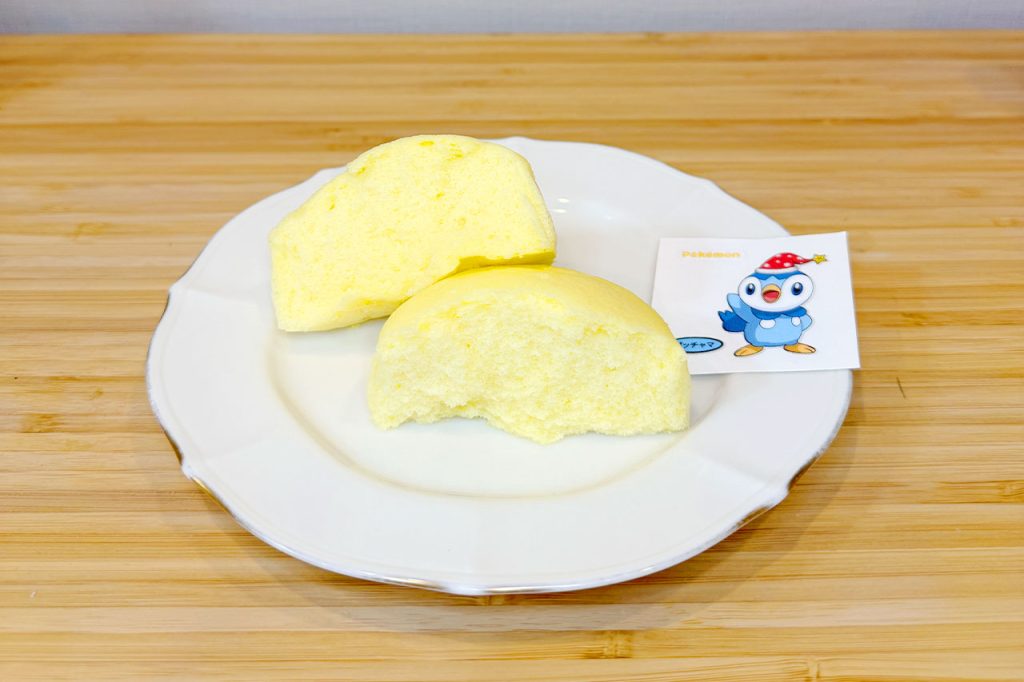 甘くてミルク感があって美味しい。ふわふわしていて軽い食感の蒸しケーキ。蒸しパンではないのでもちっとした弾力はありません。1つ前に紹介したいちご&ホイップの蒸しケーキとほぼおなじ。サイズ感は小腹が空いた時にちょうど良い大きさで、大人の手のひらの丸いところくらい。