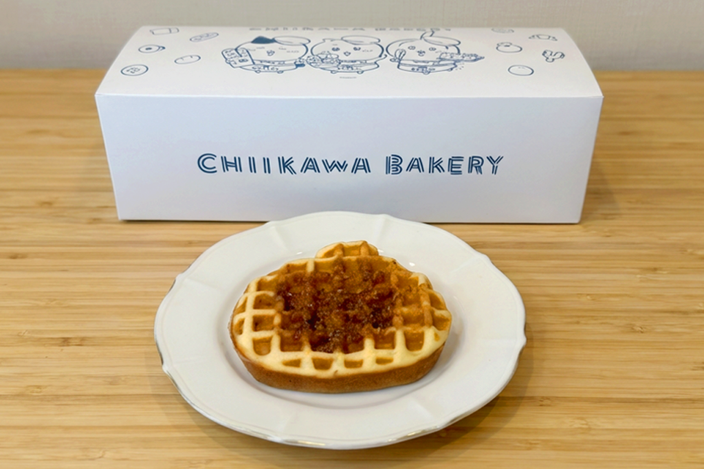 ちいかわのキャラクターをイメージしたパンやグッズを売っている公式店舗に行ってきました。場所は原宿にあります。こちらのワッフルはちいかわちゃんの友達のカブトムシを再現した商品です。