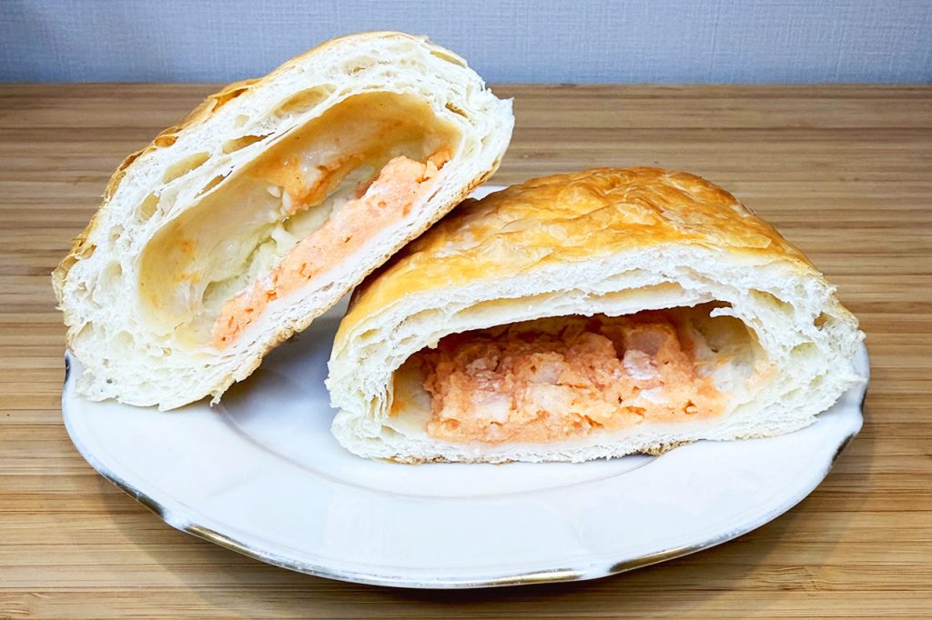 ピンクの明太ポテトフィリングが美味しそうですね。デニッシュ生地に綺麗な空気の層ができていてそちらもおいしそう。ごく定番のパンですが、こういうところからpascoの仕事の丁寧さが伺えます。