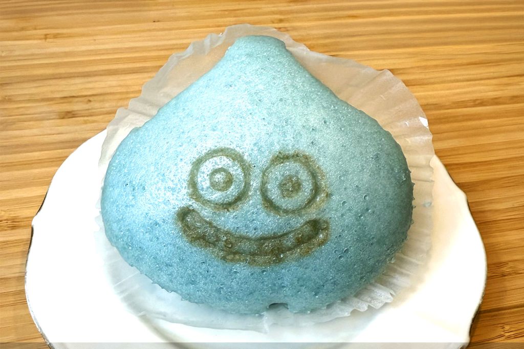 うーん可愛いですねぇ。こちらはノーマルスライムで、スライムベス(カスタードプリン風味)、メタルスライム(コーヒー風味)もあります。スライムが3色並んでいるのは店の外からも見えて、目を引きます。この時期になったなぁと感じるのはこのシリーズが好きだからでしょうか?!