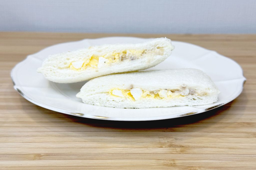 半分に割ってみると、ツナと卵がミックスされた具がしっかり。試しにもう一個も割ってみましたが、そちらもミックスサンド形式でした。って当たり前か。