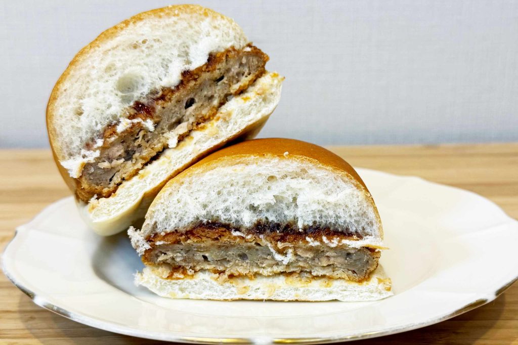 ふっくらとしたパンにメンチカツとブルドッグソースをサンドしました。